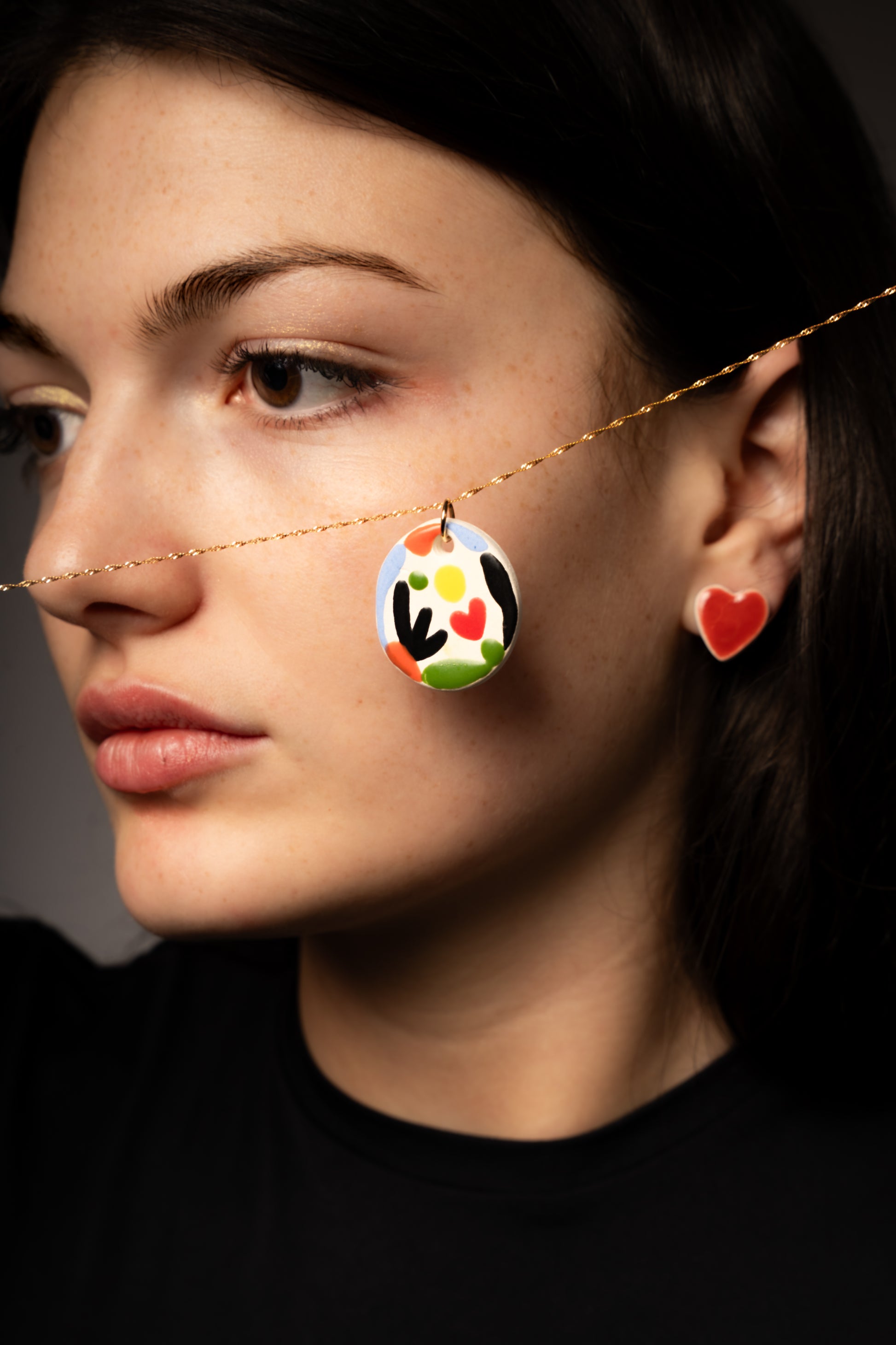Inspiré par l'univers coloré et audacieux d'Henri Matisse , ce médaillon unique en céramique artisanale incarne l'élégance et la fluidité des formes.